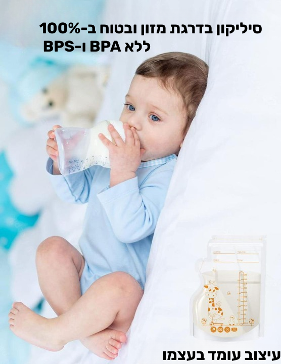 כל שקית מכילה עד 250 מ"ל (8.5 אונקיות) חלב אם.